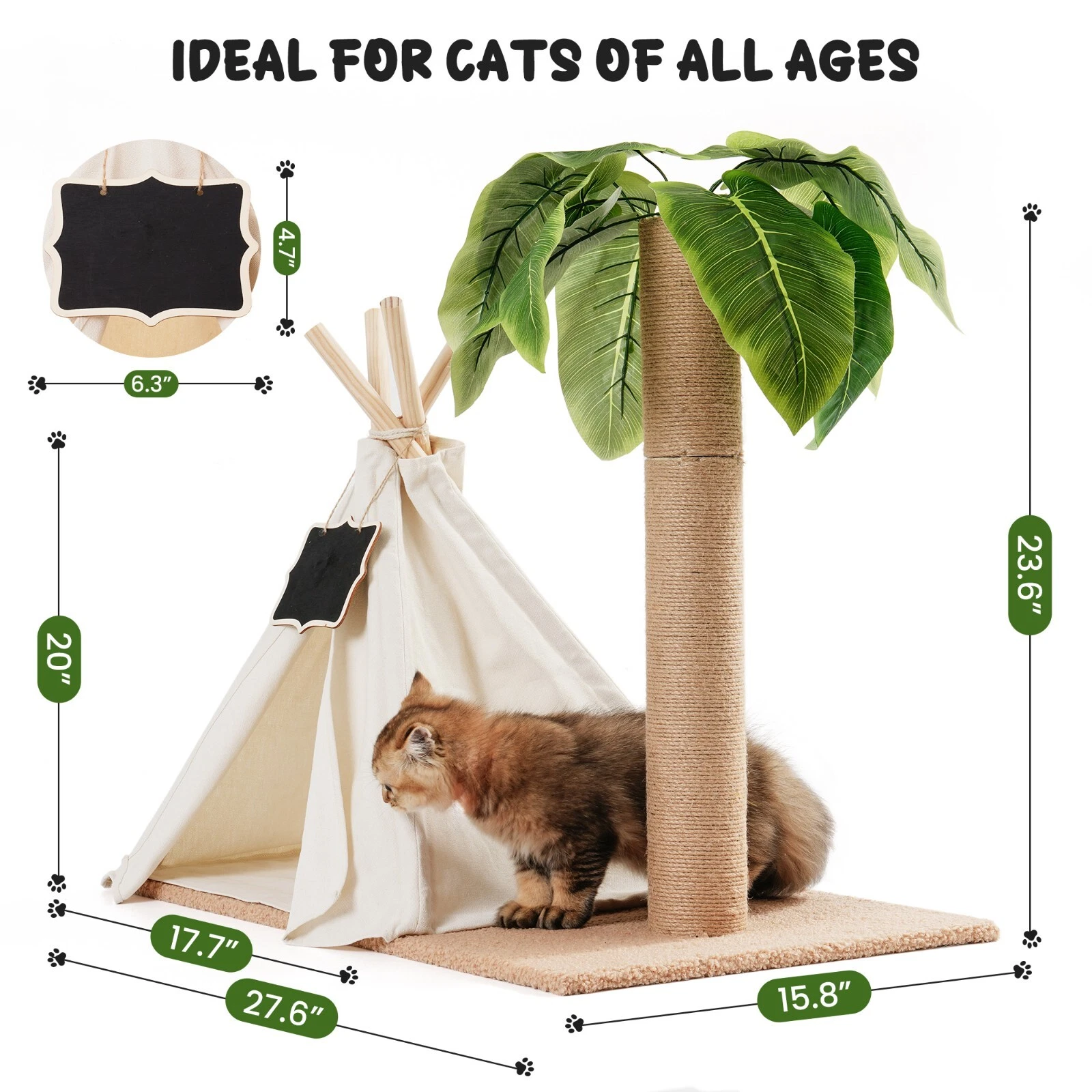 2-in-1 design: scratching post plus teepee tent for play and rest.